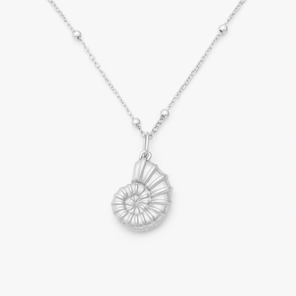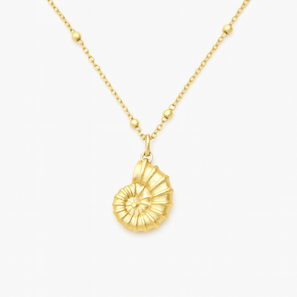 Die Muscheltraum Halskette mit ihrem kunstvoll gearbeiteten Nautilus-Anhänger vereint Meeresinspiration mit modernem Boho-Charme.