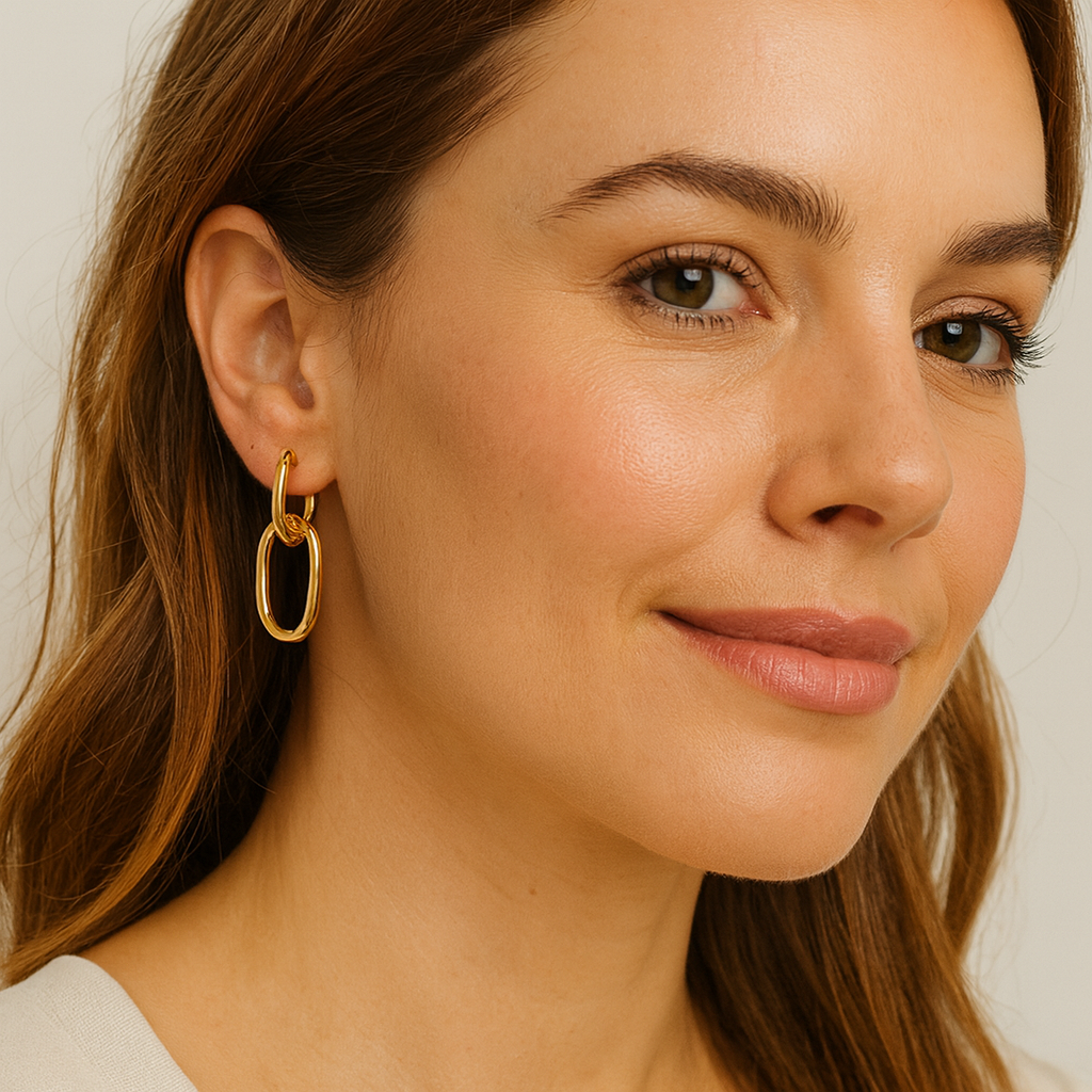 Ihr geschwungenes Kettenglieder-Design in glänzendem Gold sorgt für ein markantes Statement – perfekt für Tag und Nacht.